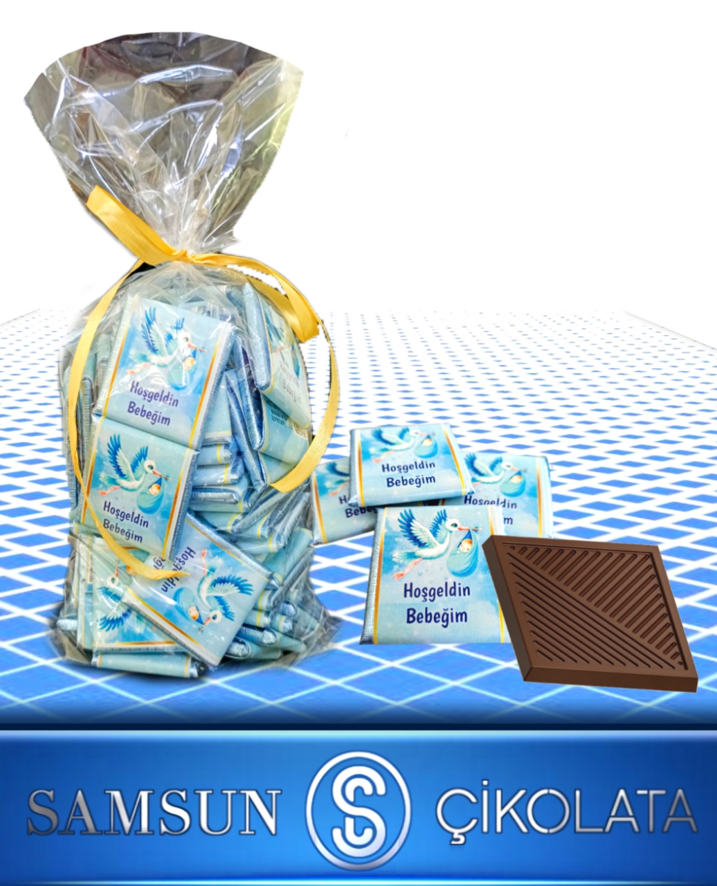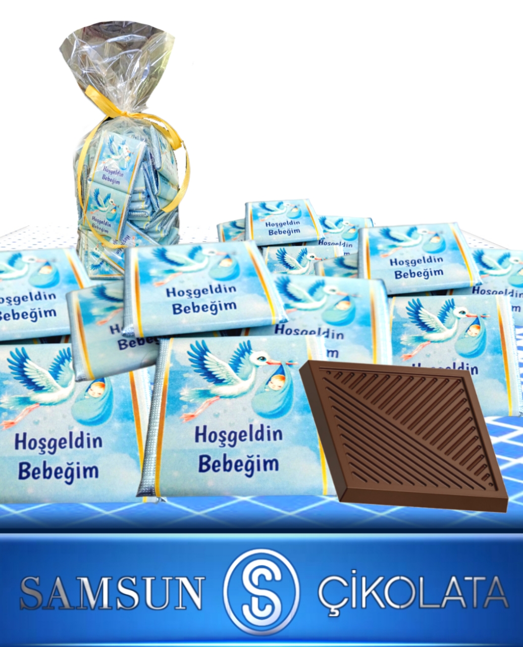 Bsc Chocolate 72 Adetli Özel Leylek Figürlü Kuşak Sargılı Erkek Bebek Temalı Sütlü Madlen Çikolata.