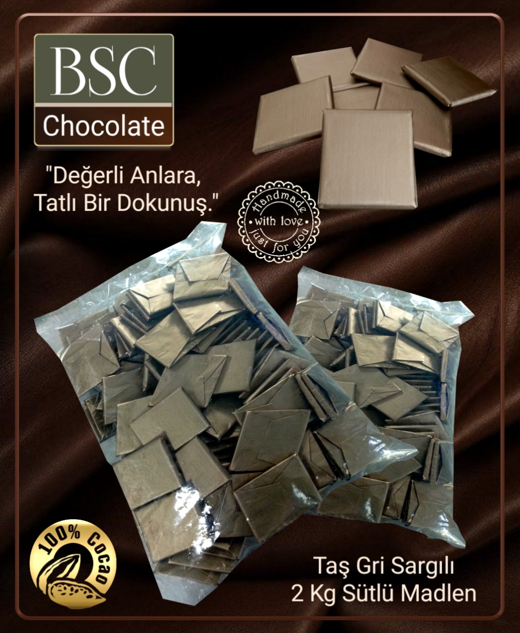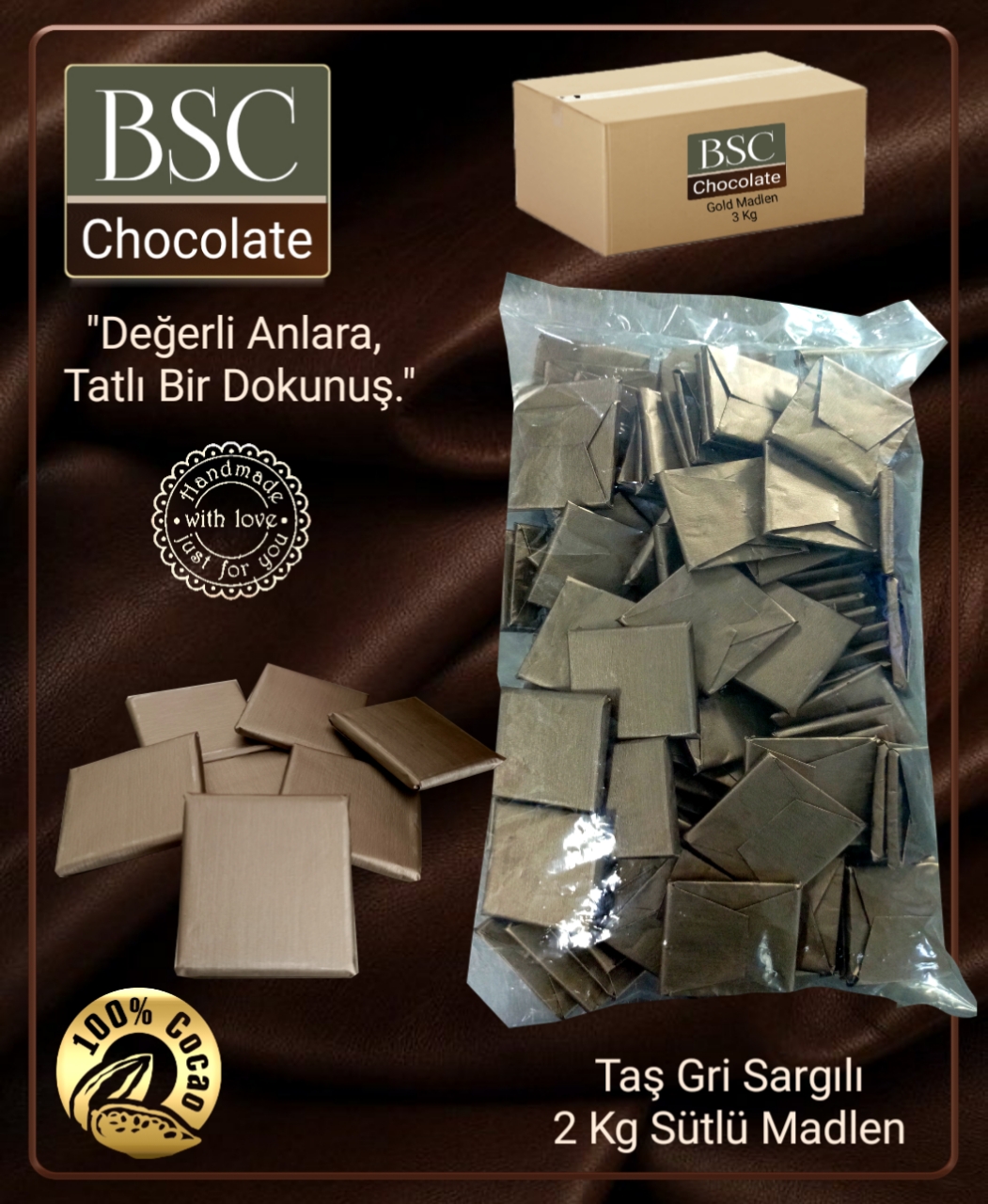 Toptan Alıcılar İçin 2 Kg Özel Kolisinde Taş Gri Sargılı Madlen Sütlü Çikolata. Ürünümüz, Size Özel Üretilip 2 İş Günü İçinde Özel Ambalaj ile Paketlenip, Kargoya Verilmektedir. Ürünümüz Türk Gıda Kodeksi Kakao ve Çikokata Üretim Tebliğine Göre Gerçek Çikokata İçin Öngörülen Orjinal Muhteviyat Kullanılarak El Yapımı Usulüne Göre Usta Şefler Tarafından Hazırlanmaktadır. Kuru, Serin, Direk Güneş Işığından uzak Yerde Muhafaza Ediniz. +8 /+20 C° Arasında Muhafazası Sağlanmalı