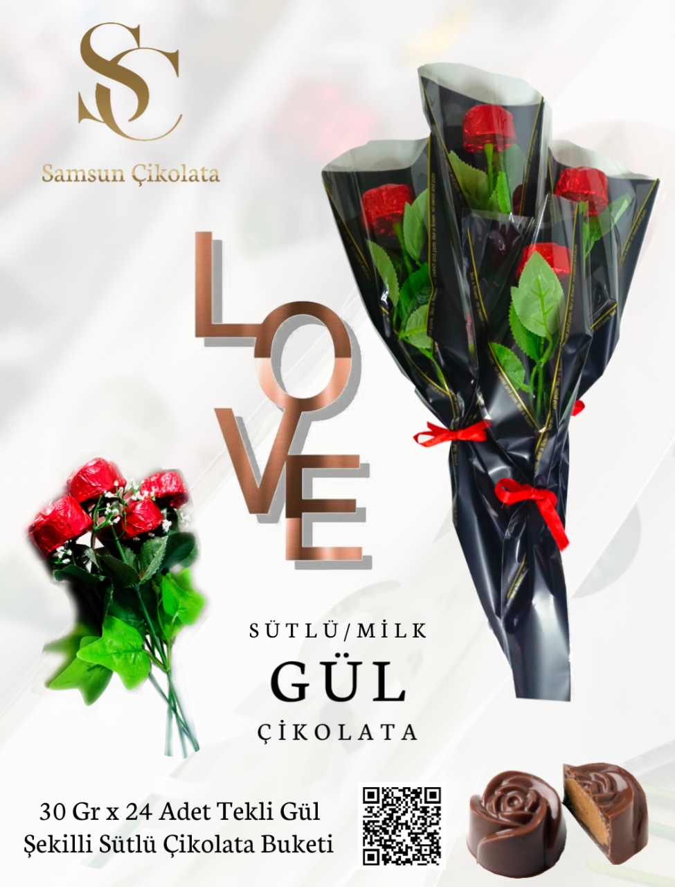 30 Gr Gül Şekilli Sütlü, Fındık Kreması Dolgulu Çikolata .